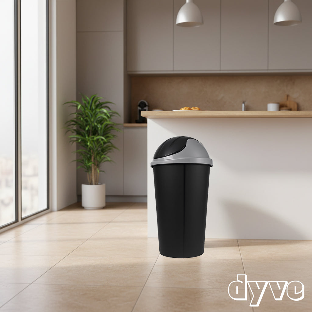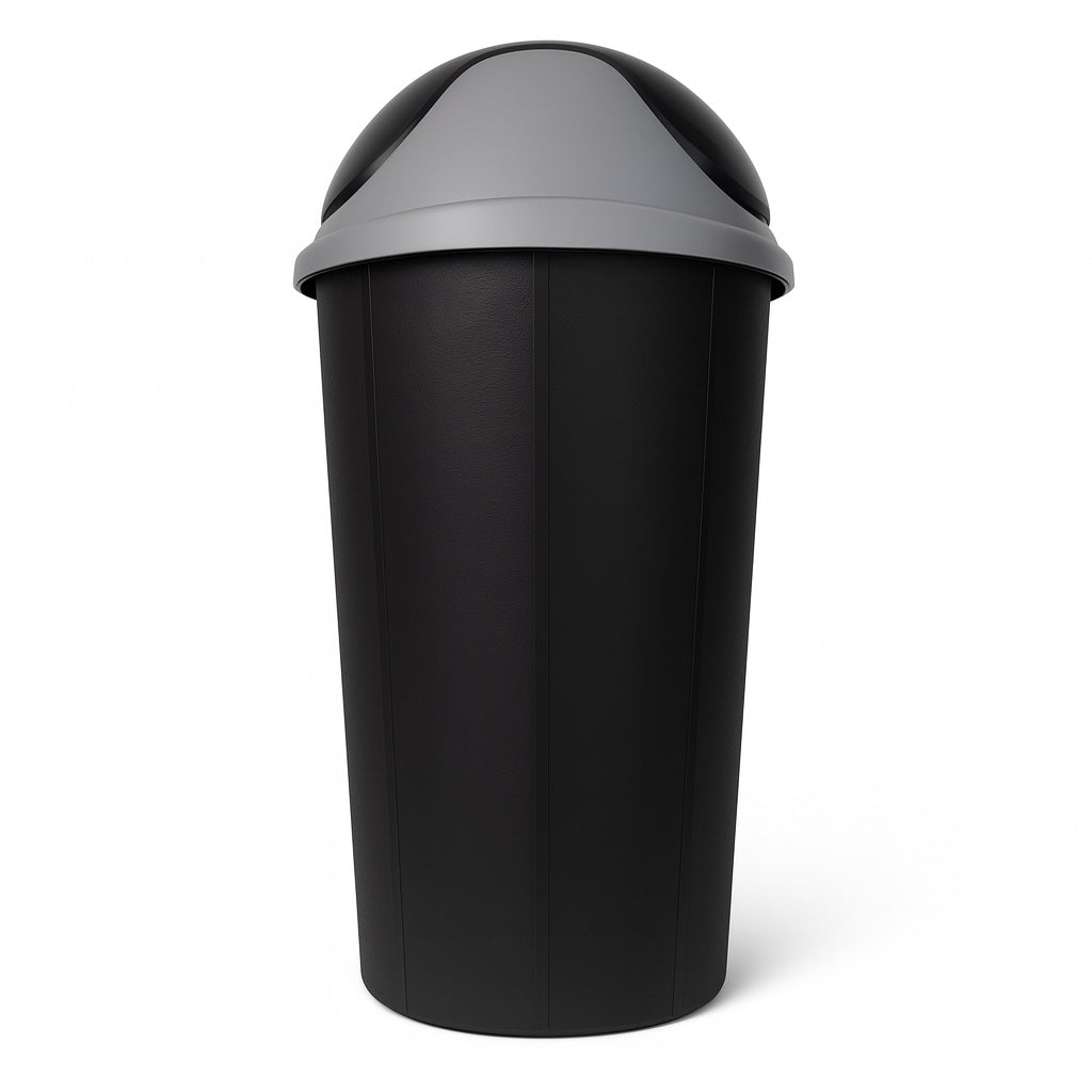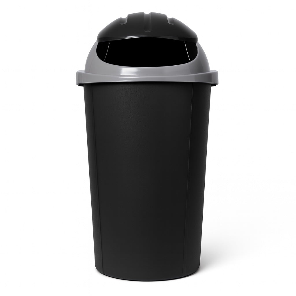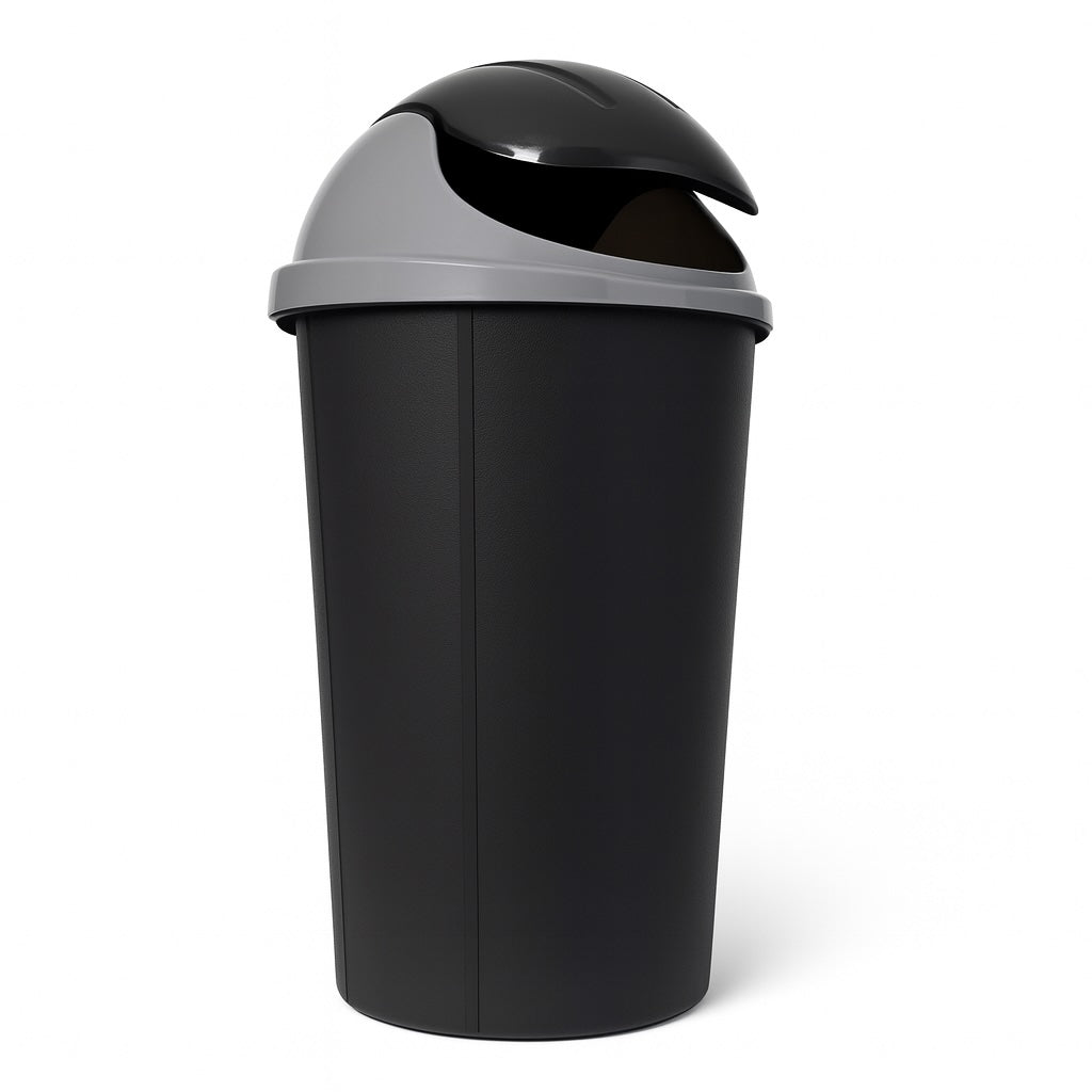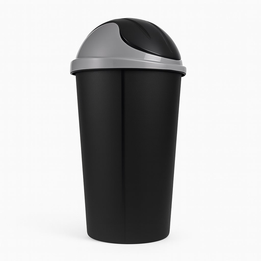 La tapa tipo vaivén facilita el depósito de residuos sin necesidad de tocarla, ayudando a mantener la higiene. Fabricado en plástico de alta resistencia, este bote es ligero, fácil de limpiar y lo suficientemente robusto para el uso diario.